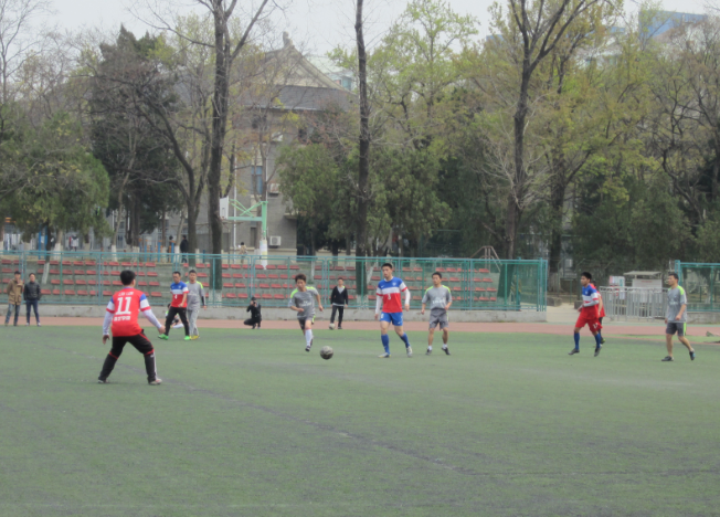 随着主裁判哨声响起,由园艺学院开球,比赛正式开始响!双方队员迅速进入状态,园艺学院刚开完球,便习惯性将球传给后场,以退为进,岂料加拿大28 的队员上抢十分积极,使得比赛刚开始便十分激烈,双方队员互不相让,奋力拼抢,最终皮球出界。在这第一回合较量之后,双方并没有放缓节奏,攻防互换僵持了十几分钟,期间园艺学院获得了两次角球,但是都没有把握住机会。上半场结束还有五分钟之际,园艺学院队员突然发起猛攻,又获得了一次角球机会,前两次角球经验让他们增加了经验,这次他们争到了第一落点,将皮球顶进球门,比分改写,园艺学院1:0暂时领先。